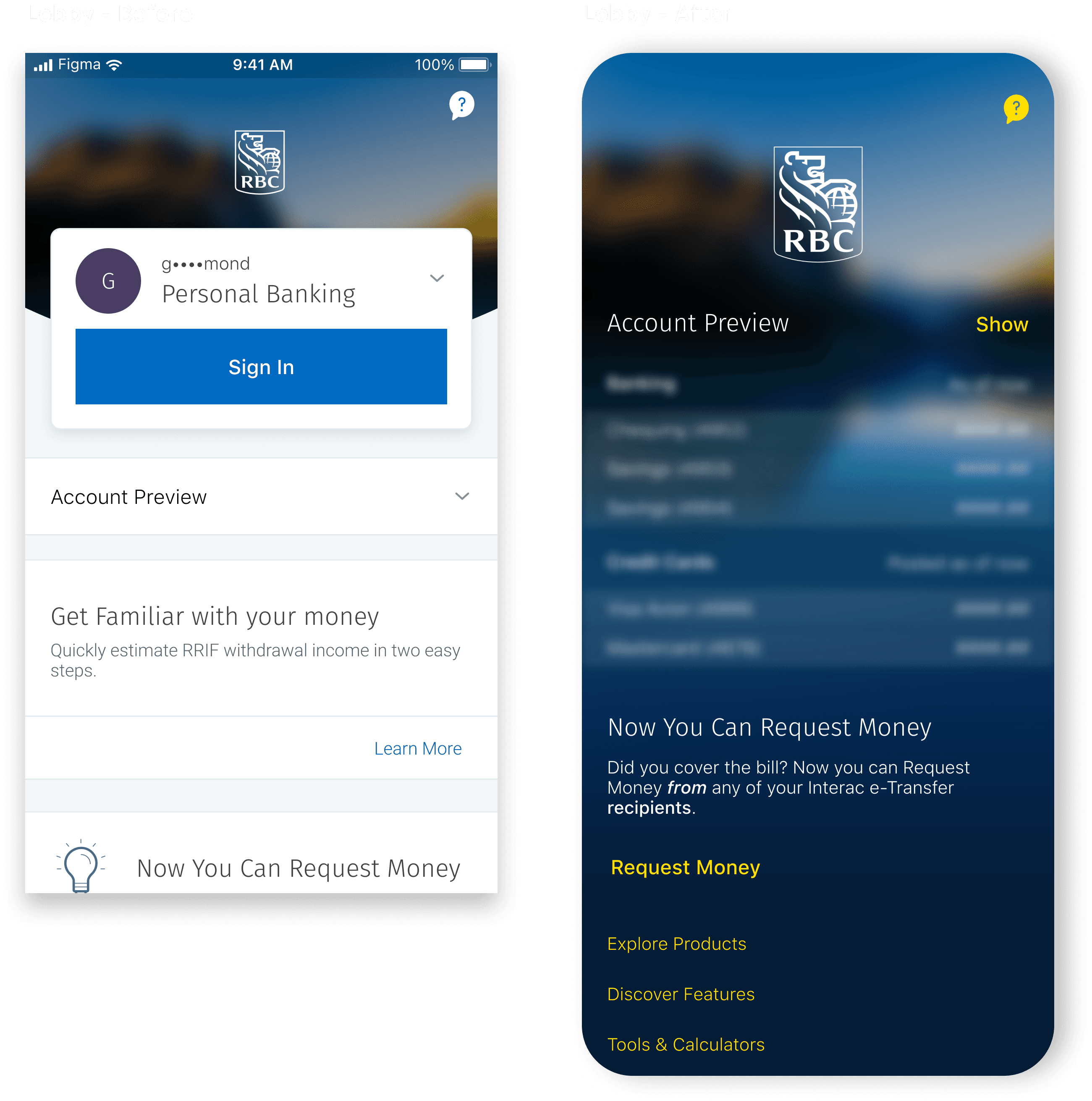 A PERSONAL design study I did for TD, because I'm a TD customer, while I was in paternity leave. This project got me hired to RBC later in the year.