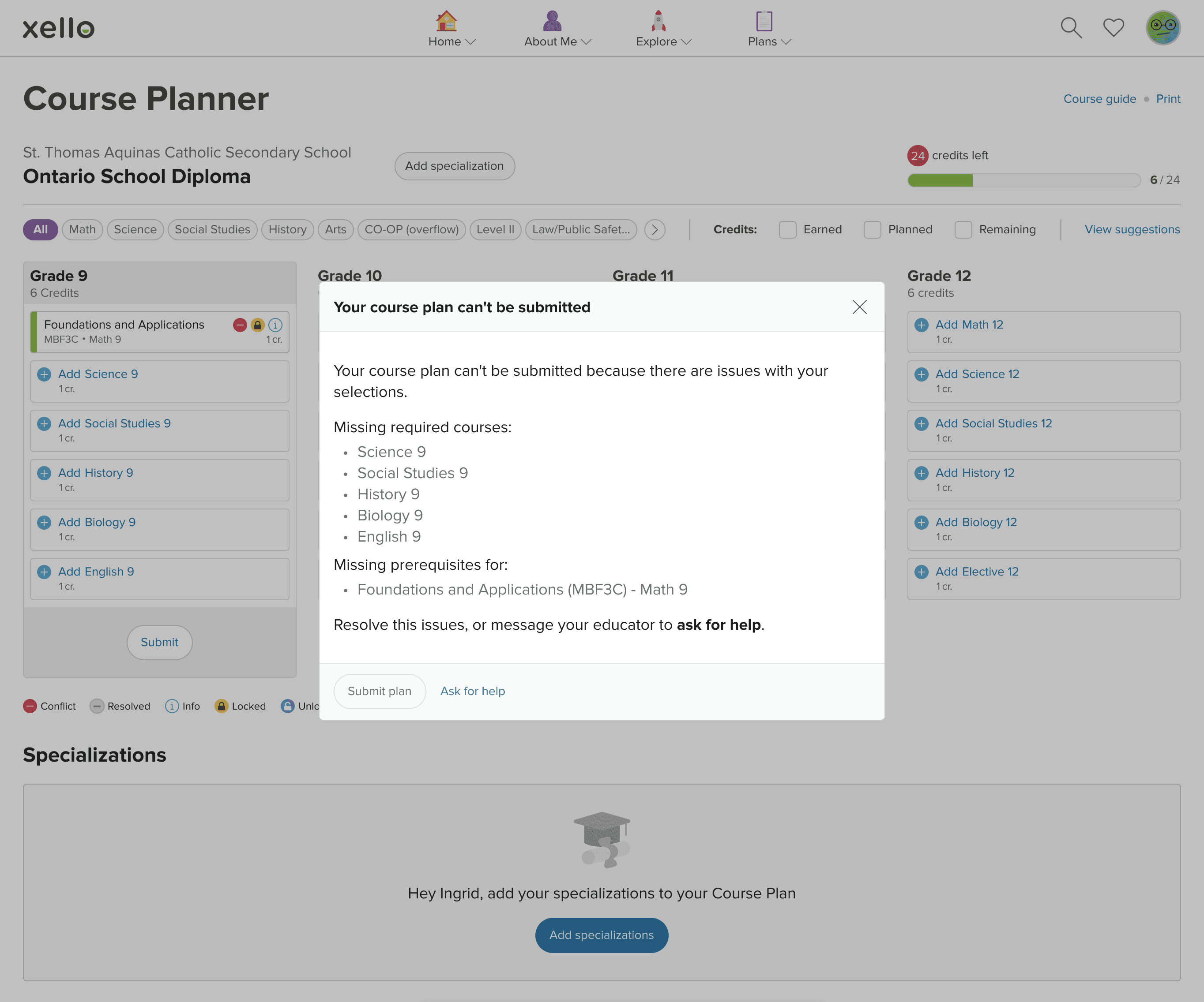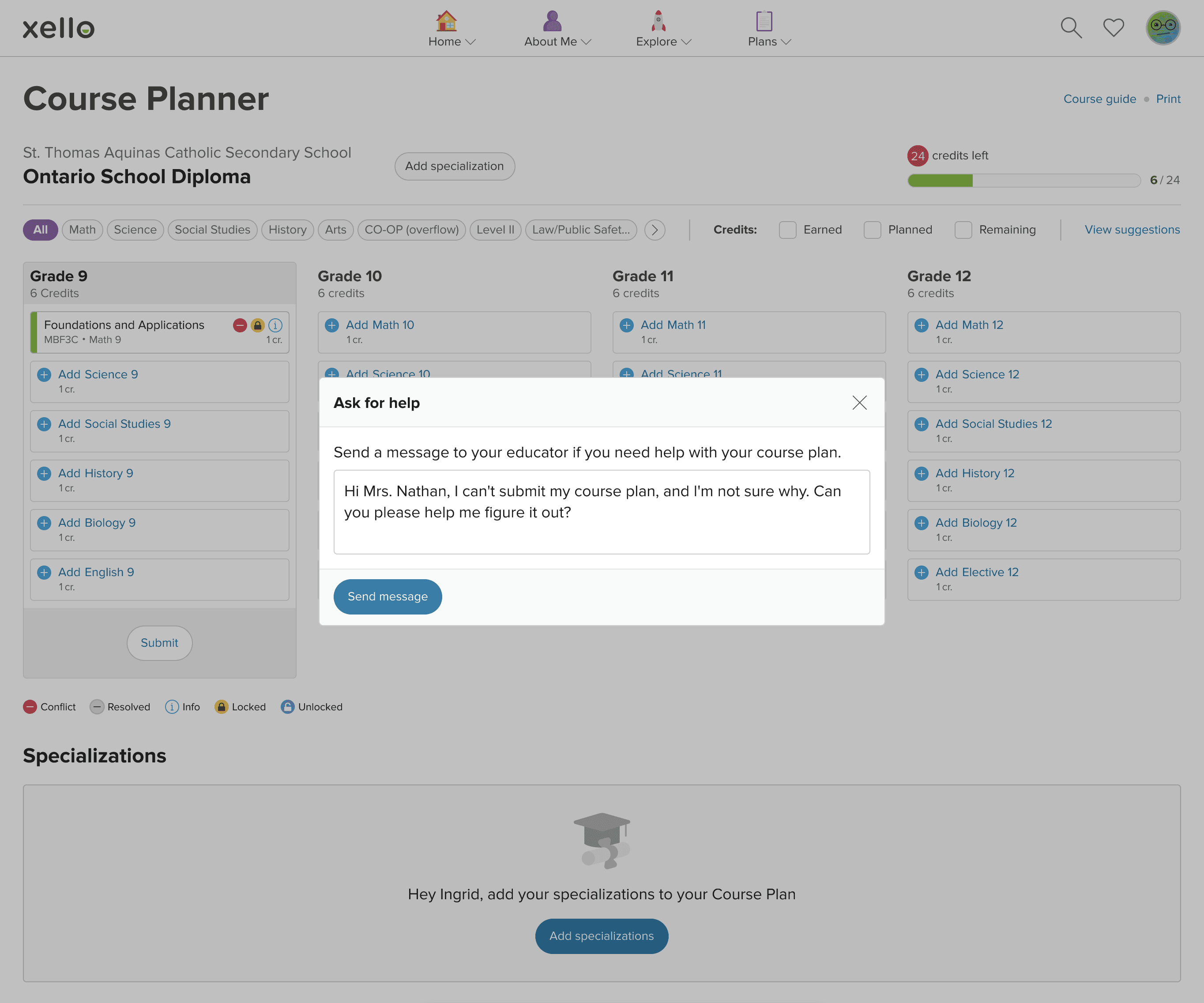 Xello doesn't allow plan submission with errors — so when students hit a wall, they were stuck. Alone.