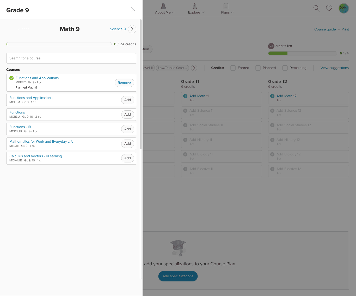 Swapped the diploma dropdown for a tab navigation per requirement - making planning by requirements finally intuitive